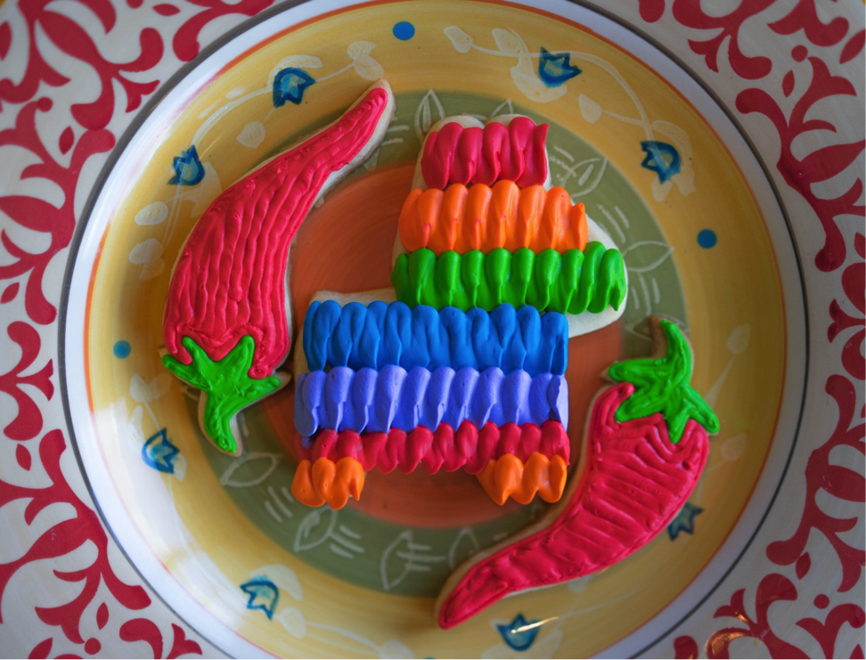 This tutorial will focus on helping you create your own piñata sugar cookie. While piñatas come in a variety of colors and shapes, we will take the old fashioned-can’t go-wrong-with-the-original piñata. And I will do my best to show you how to create that ‘ruffle’ effect.