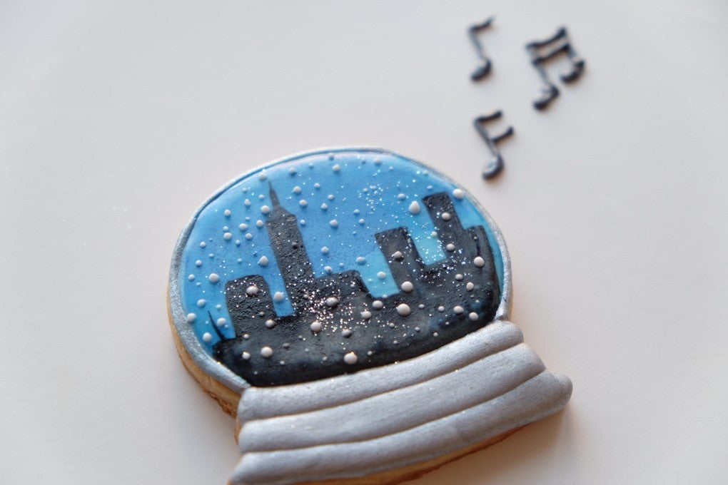 Have you ever had an idea rattling inside your head, just waiting to be brought to life? Well, it happens to me a lot. Finding the time to bring all of those idea to life is challenging, but I stole an hour away from my orders to cookie the city I love the most by putting it into a magical snow globe cookie. What I like about this custom cookie is that it can be any city, scene, or monument. They can be passed around for Secret Santa, given as a Hanukkah gift, used as Christmas tree ornaments (cut a small hole into the top before baking), and, of course, eaten!