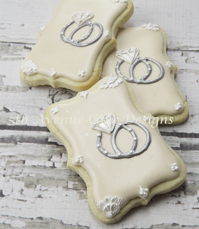 We're right in the middle of "engagement season," when there is a disproportionate number of friends and acquaintances getting engaged. This post will be helpful for those who want to congratulate friends on recent engagements, help out with a cookie proposal or simply a unique way to announce an engagement to friends and family. Bobbie of 5th Avenue Cake Designs shares her take on an engagement cookie.