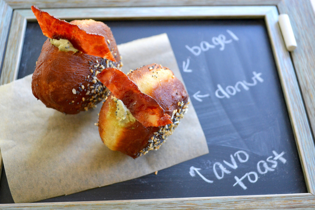 The fried, fluffy brioche doughnut is the perfect vehicle for a smooth avocado-cream cheese filling topped with bacon (I paired it with brown sugar-cayenne bacon and it was incredible). Three great breakfast foods – bagel, doughnut, and avocado toast – are combined into one ultimate doughnut so you no longer need to choose between them!