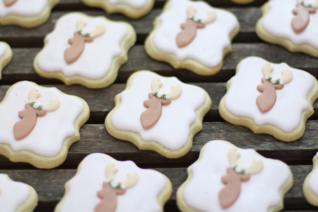 Place a 2-toned deer head fondant shape onto each dried cookie.